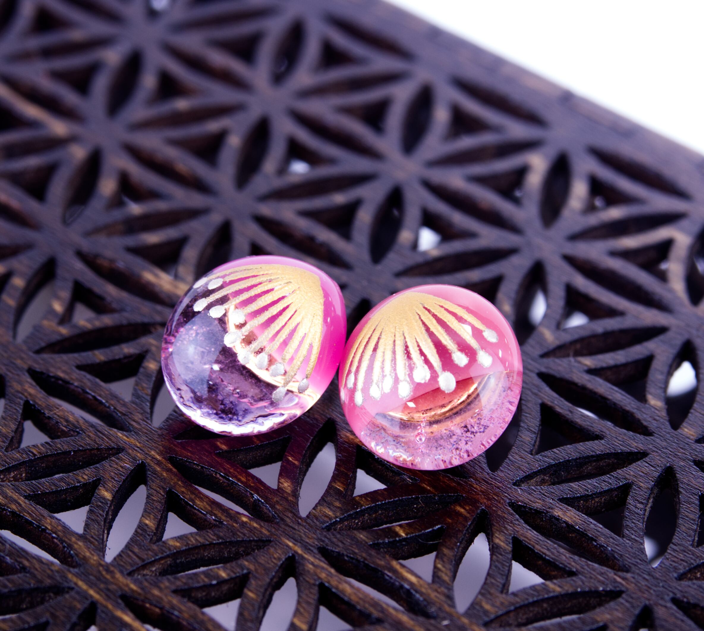 ガラスピアス蒔絵(透きピンク)